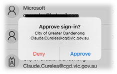 Multi-factor authentication is an additional layer of security that is used to validate your identity on the CGD network. In addition to your login name and password, an additional prompt on a mobile device will be used to verify your identity at the login stage (see image below).